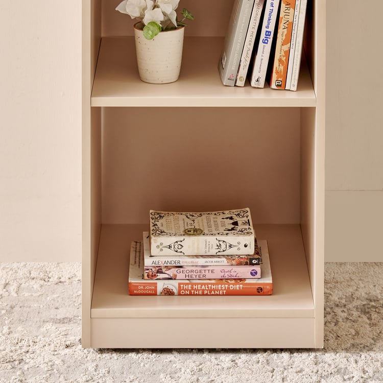 Bring smart storage and clean design to your space with this versatile bookshelf. Crafted from engineered wood with a smooth melamine prelam finish, it features a matte look and resistance to termites and wood borers. The open profile includes three shelves that include one fixed and two adjustable shelves, ideal for A4 or larger items. Sturdy support pins ensure the adjustable shelves stay firmly in place.