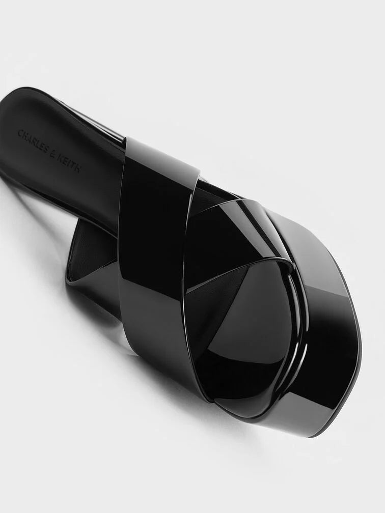 Elevate your style with the timeless allure of classic black shoes. Featuring elevated platform heels, these chic crossover strap mules offer a stylish boost in height, ensuring you stand tall and command attention wherever you go. The convenient slip-on design guarantees effortless wear, while their versatile black finish promises easy styling for any occasion. Step into these bold platform mules to make a statement that exudes elegance and confidence.
