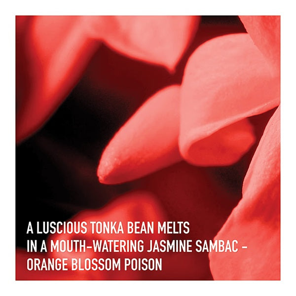 The lush charm of Sambac jasmine absolute mingled with a welcoming orange blossom absolute is wrapped in smooth, intensely evocative tonka bean. The round liquorice note behind the seductiveness of Hypnotic Poison is boosted to new, bolder heights. It creates an irresistible appeal empowered by the vanilla, an immediate sign of gratitude. An atmosphere of total deliciousness reigns. The bottle is an absolute icon. A sultry incarnation of the forbidden fruit, a tempting red apple. Its glass appears possessed with molten lava.