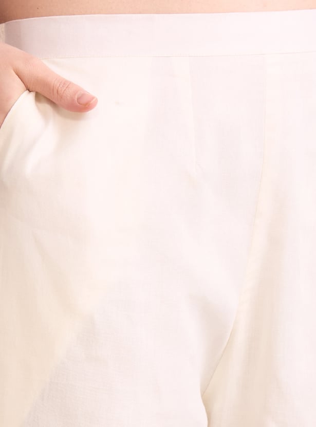 This elegant kurta set is perfect for festive occasions. The straight kurta features an embroidered design, a V-neckline, and 3/4th sleeves, adding refinement. The set includes straight pants with an elasticated waistband and a bandhani printed dupatta.