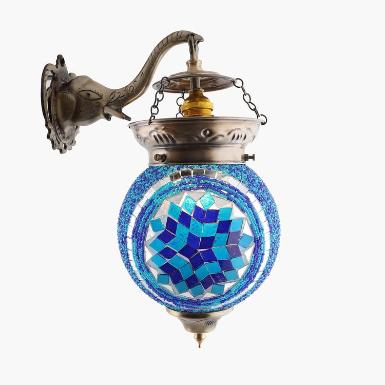 Decorate like never before with mmosaic, a time-worn beauty that has still not lost its charisma. Small pieces of coloured glass asymmetrically placed make it unique and when bulb is lit inside, you get an unparalleled masterpiece. Made from mouth blown glass, coated with a flower mosaic pattern, small pieces of glass chatons and seed beads arranged beautifully on pot in resin filler. Simply light an incandescent bulb and enjoy the magical effect of mosaic. A convenient with tested and approved standard for perfect and safe lighting.