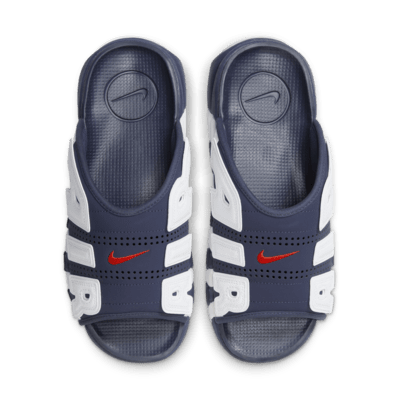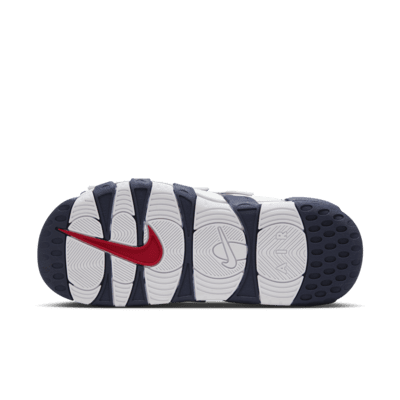 Your favourite hoops look gets transformed into slides you can easily slip on and off. Keeping the graffiti-styled "AIR" graphics you love from the original, the Air More Uptempo combines a plush strap, airy perforations and soft cushioning—making it a perfect choice for courtside, beachside and beyond.