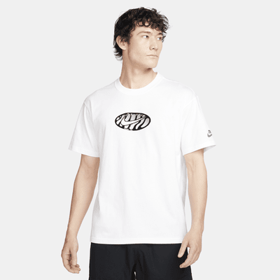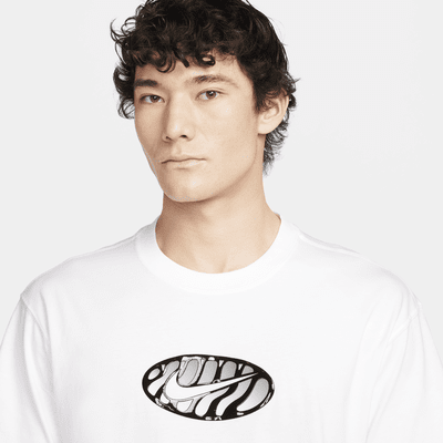 Clean and classic, this Nike tee features our signature Max90 fit and soft, midweight cotton. It's designed to feel roomy through the chest and body for easy movement and layering. A raised-silicone printed graphic on the chest nods to the iconic Air Max Plus sneaker. For added style points, pair it up with the matching shoes.