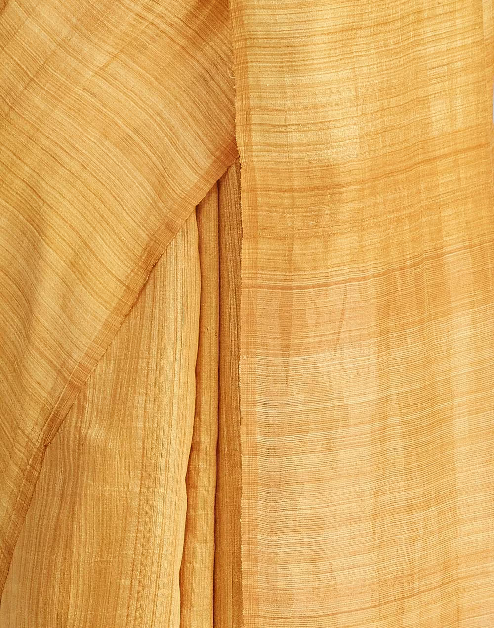 Luxury arrives quietly in this silk sari, defined by handwoven intricacy and a soft, considered drape. It is made for festive moments that call for refinement rather than excess. The finish adds richness without overt shine, letting the details take their time. Combine with a structured blouse and heritage jewellery, or introduce heeled sandals for contrast to create a look that blends grace with textural clarity.