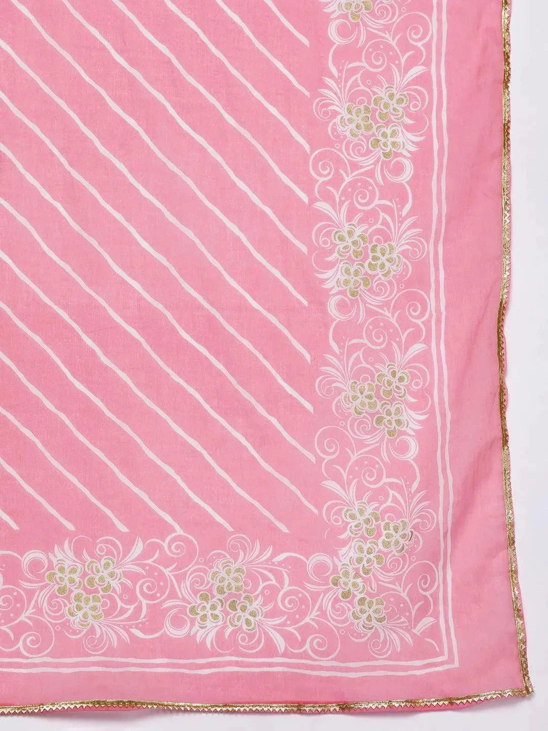 Pink Yoke Design Cotton Anarkali Kurta With Palazzos & Dupatta